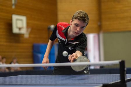 Bei langen Bällen bleibt die Fußstellung parallel, bei Kurzen macht das rechte Bein einen Schritt unter den Tisch.